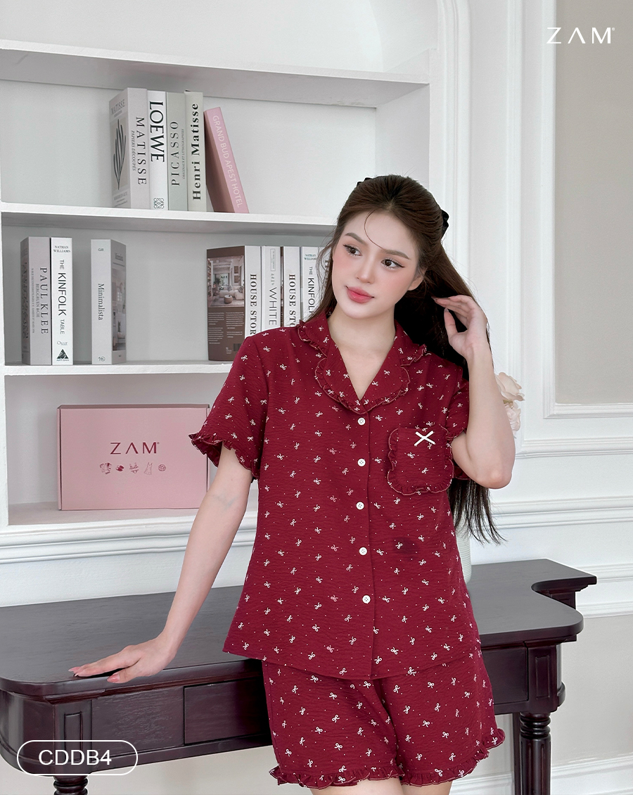 MÃ CDDB - BỘ NGẮN TAY QUẦN ĐÙI ĐŨI VÂN MÂY VIỀN BÈO CHẤM BI