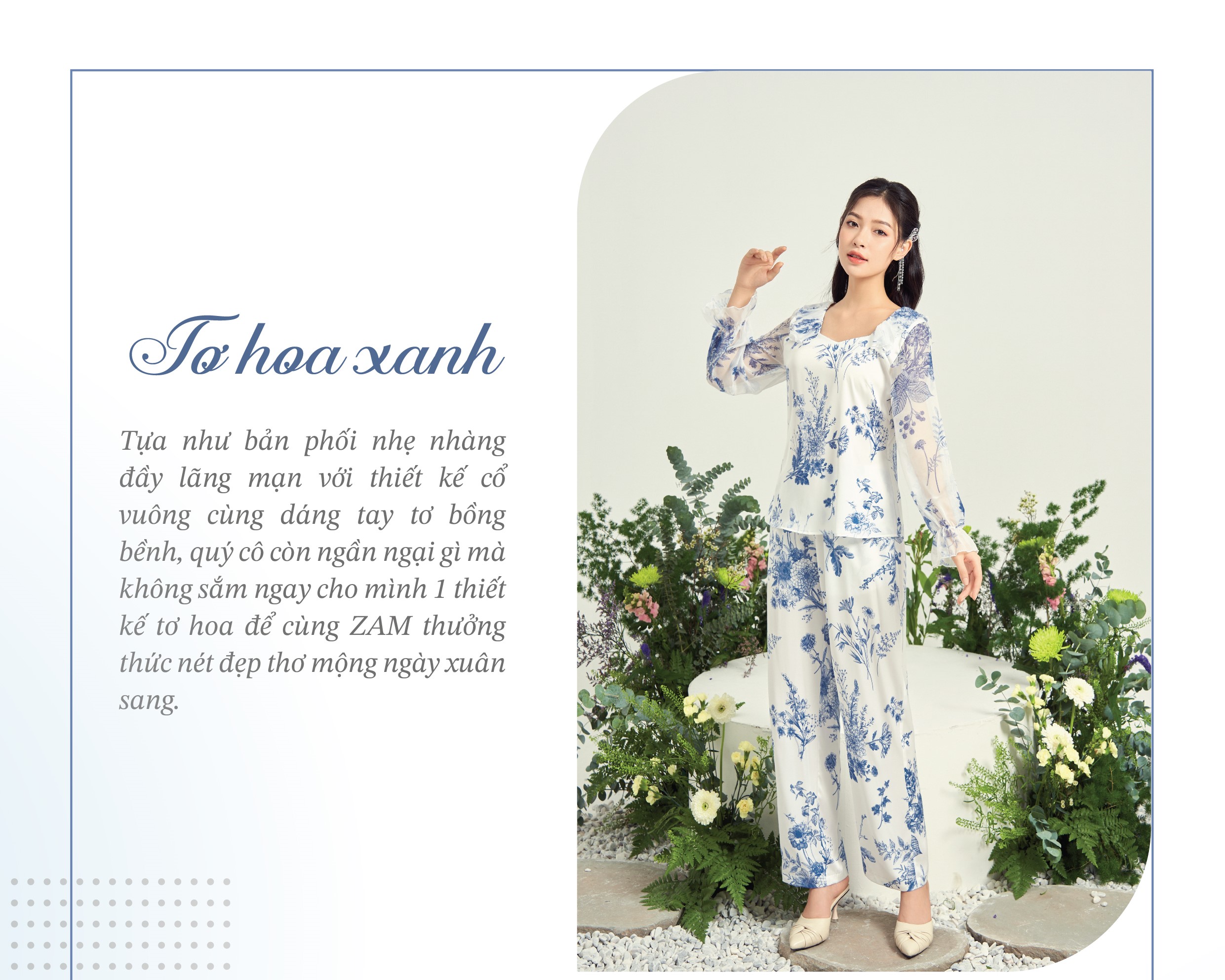 Họa lại từng nét yêu kiều, duyên dáng nhưng không kém phần rạng rỡ của những đóa hoa đang nở rộ khoe hương sắc, ZAM mang đến BST BLOOMING với những kiểu dáng trang nhã cùng chất liệu tơ và satin ngọc trai hoàn toàn mới, góp phần tôn trọn lên vẻ đẹp nữ tính và dịu dàng của phái đẹp.