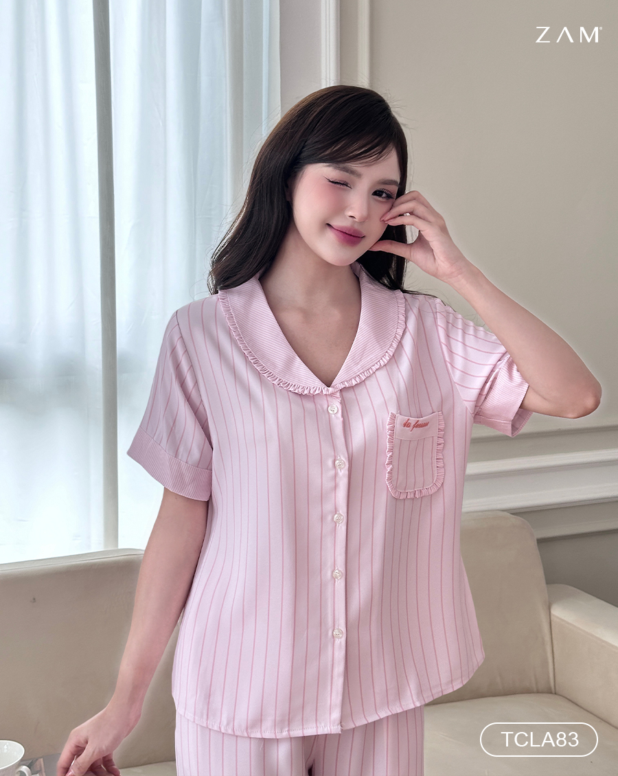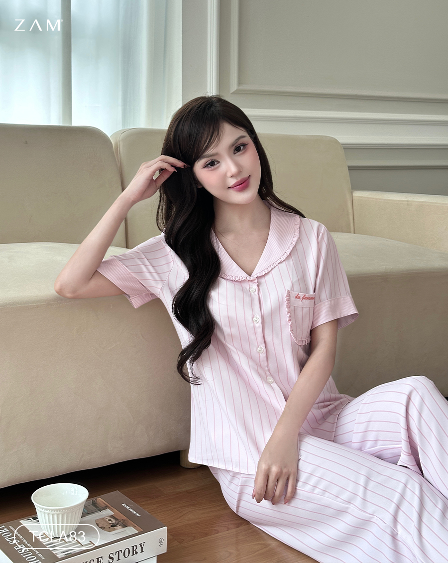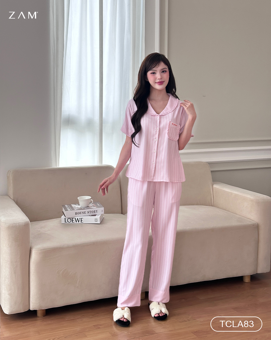 MÃ TCLA83 - BỘ NGẮN TAY QUẦN DÀI TẰM KẺ HỒNG