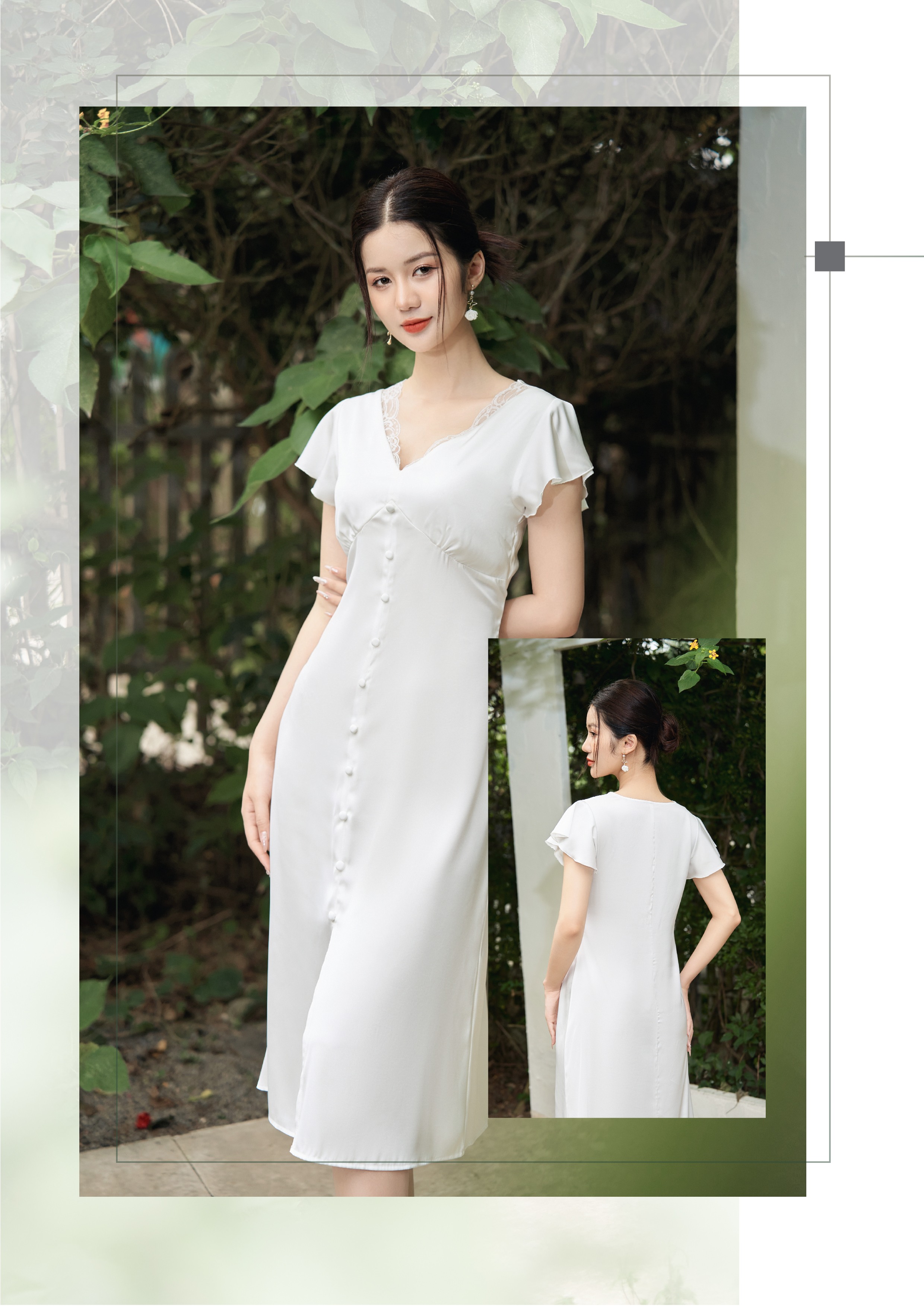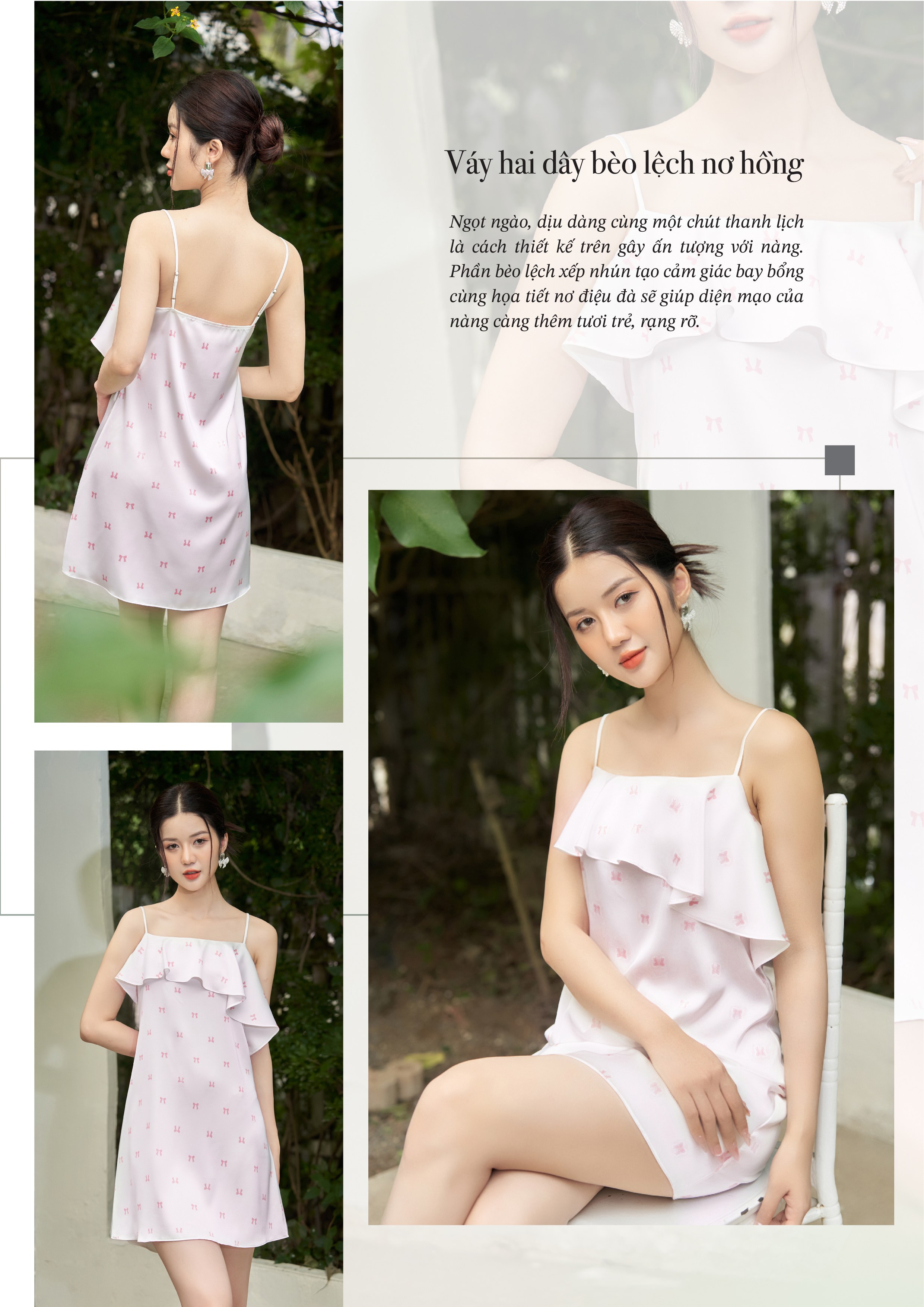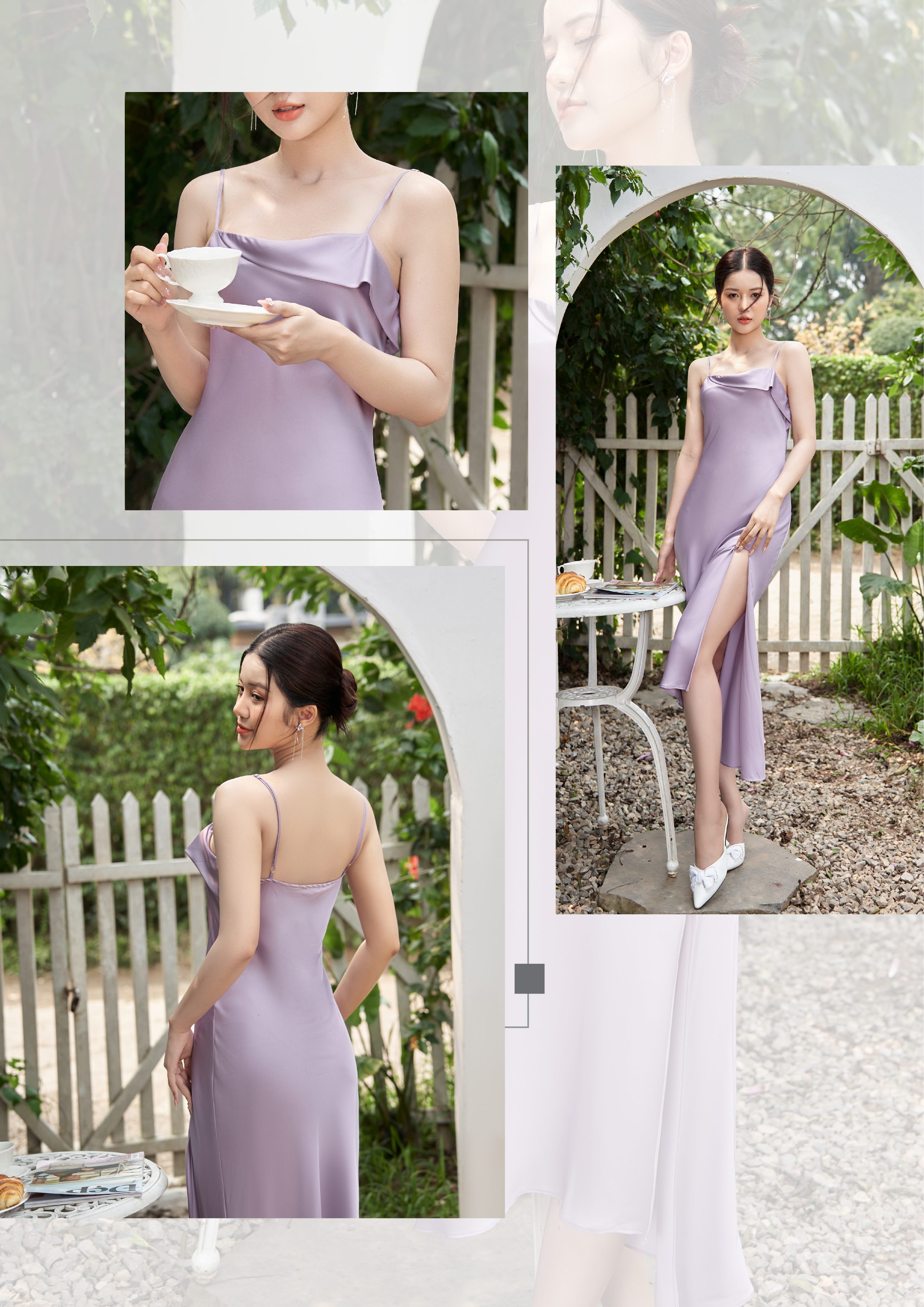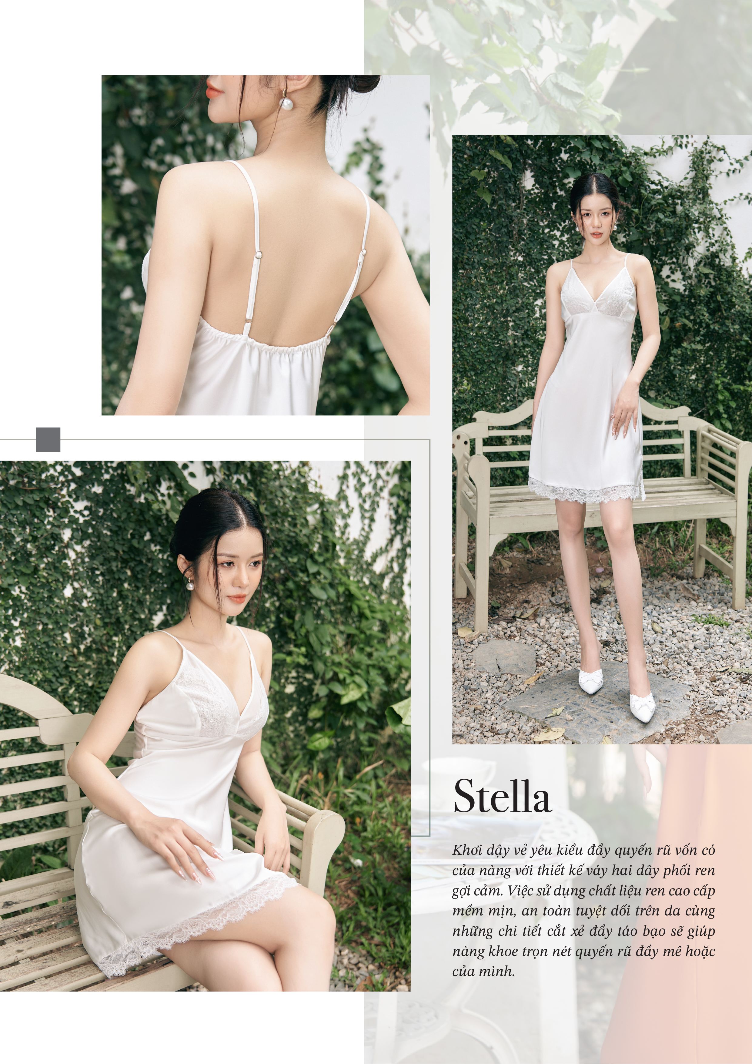 Xuyên suốt BST là những thiết kế váy thanh lịch mang tính ứng dụng cao với đường cắt xẻ tinh tế, tạo nên những form dáng thướt tha, bay bổng, mang đậm phong cách nữ tính, quý phái, cùng bảng màu thiên nhiên nhẹ nhàng như kem, xanh than, cam, tím, trắng ... góp phần vẽ nên bức tranh thời trang đậm chất thơ và đầy cuốn hút.