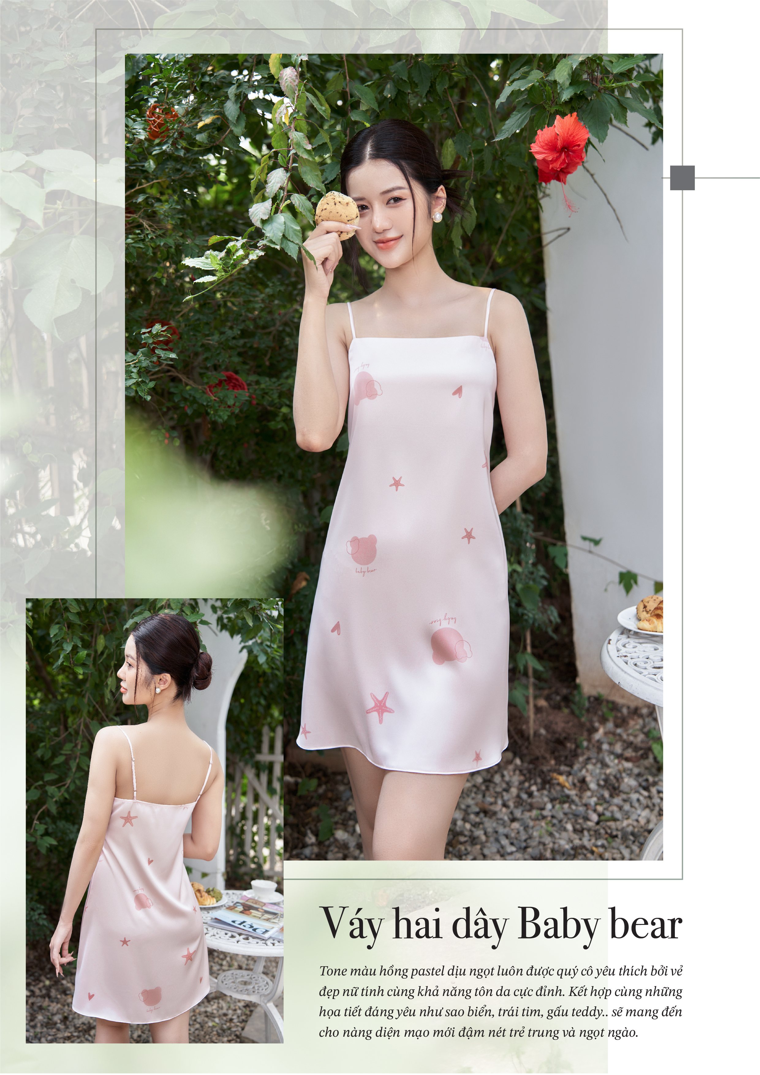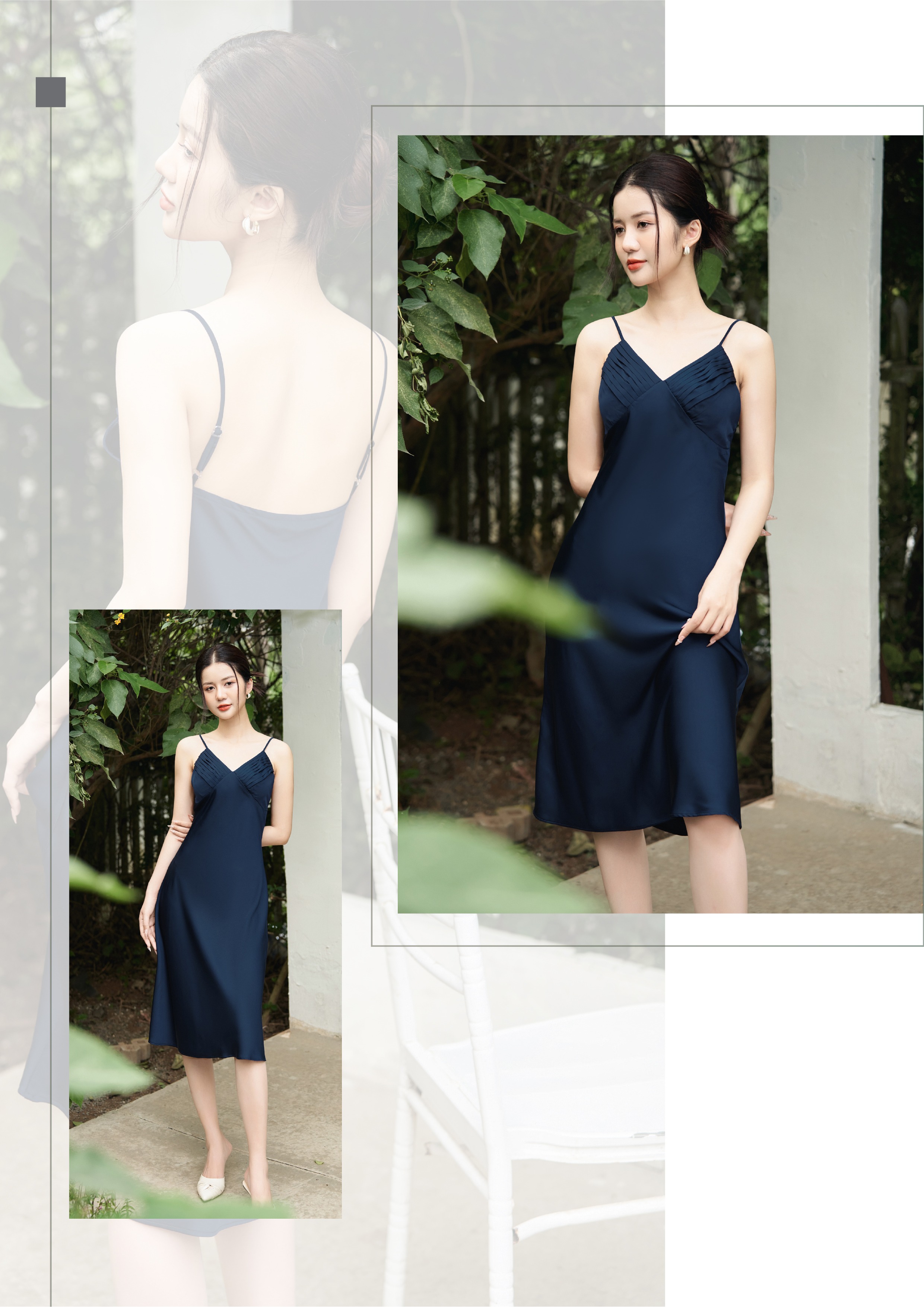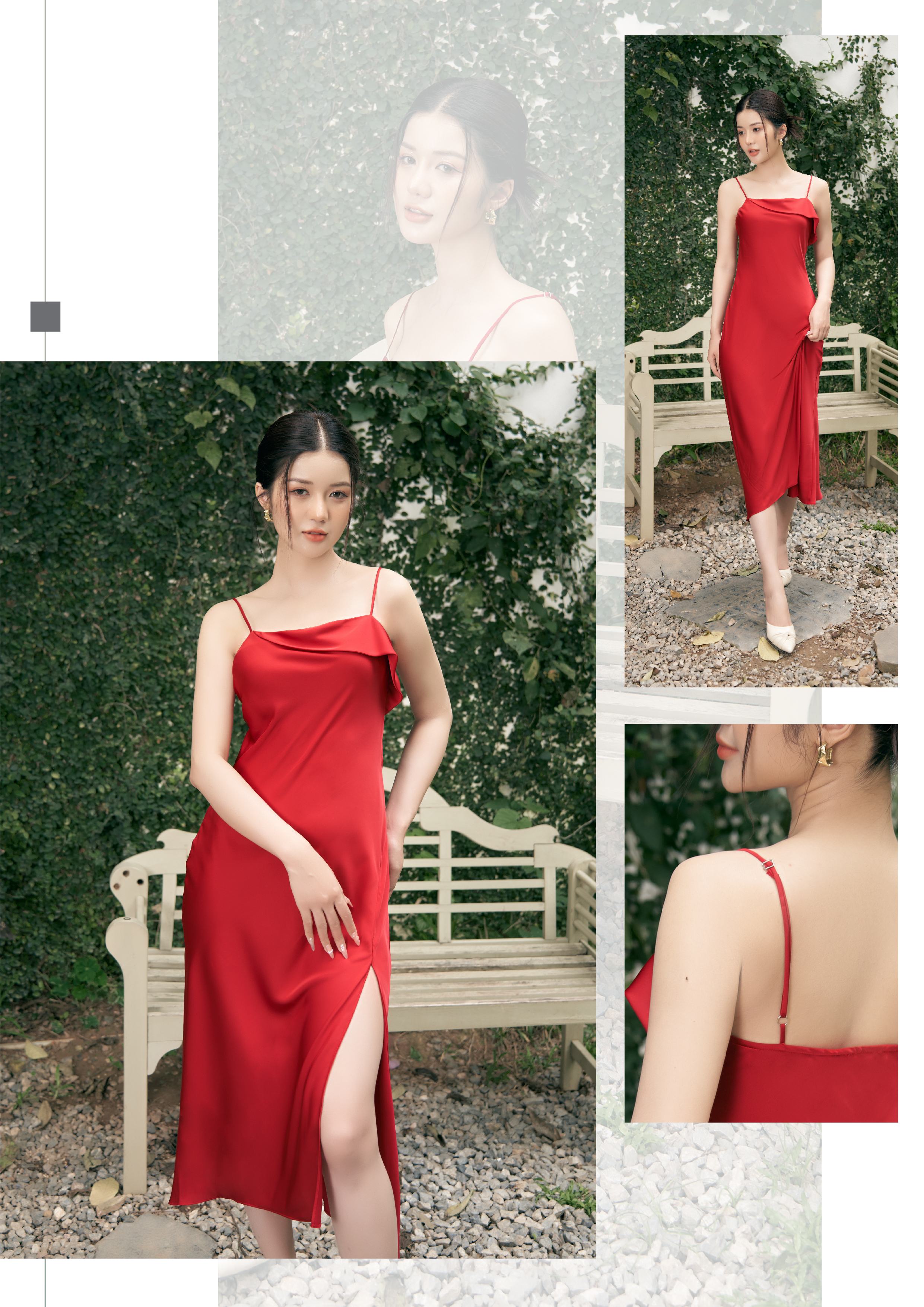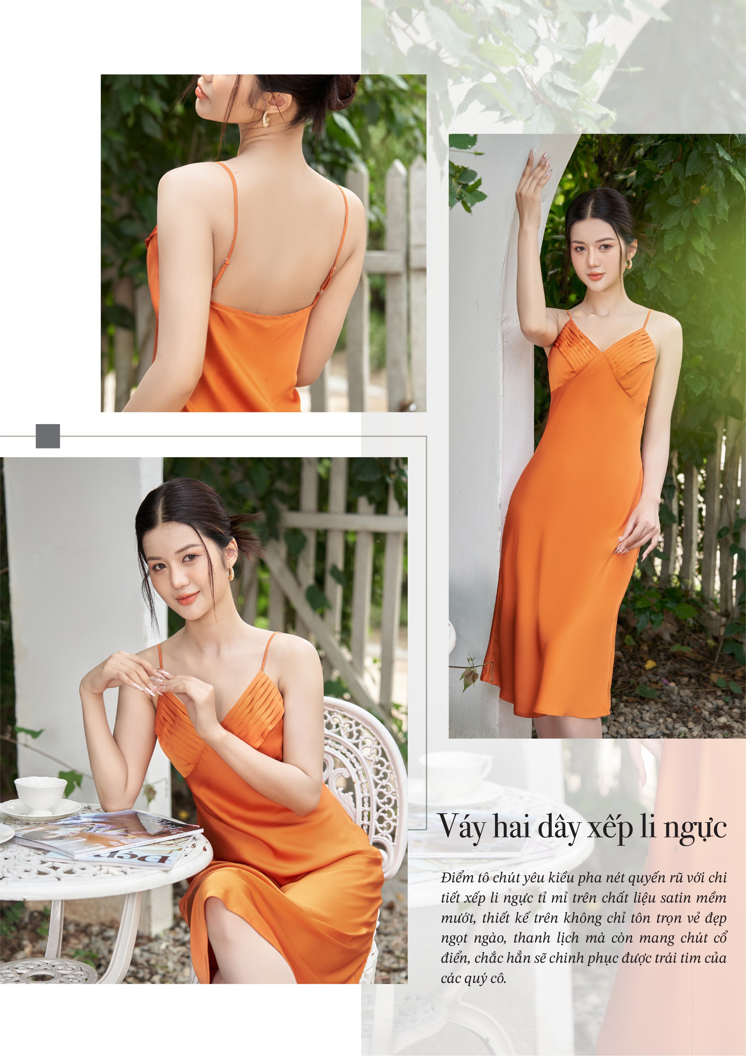 Xuyên suốt BST là những thiết kế váy thanh lịch mang tính ứng dụng cao với đường cắt xẻ tinh tế, tạo nên những form dáng thướt tha, bay bổng, mang đậm phong cách nữ tính, quý phái, cùng bảng màu thiên nhiên nhẹ nhàng như kem, xanh than, cam, tím, trắng ... góp phần vẽ nên bức tranh thời trang đậm chất thơ và đầy cuốn hút.